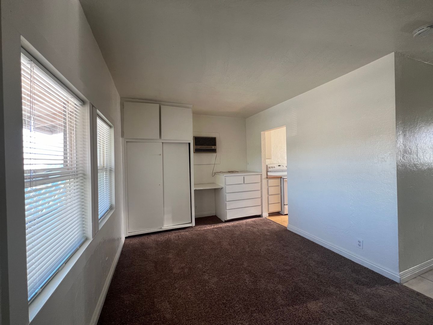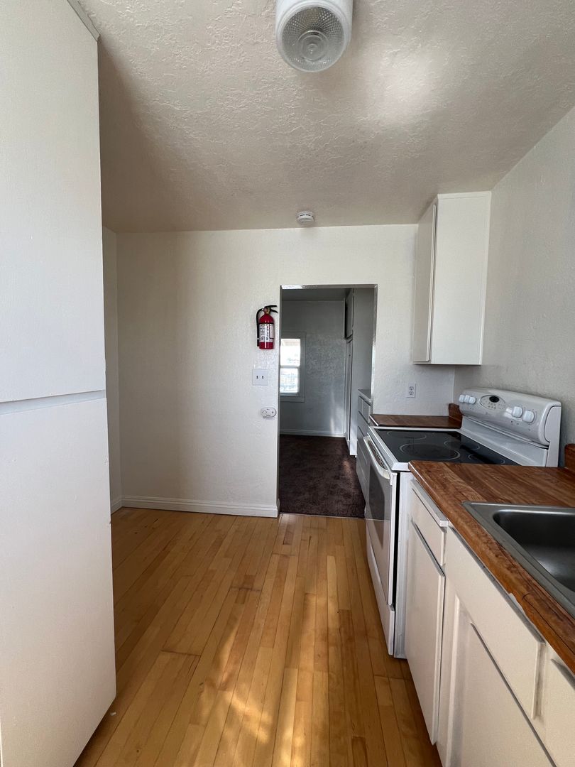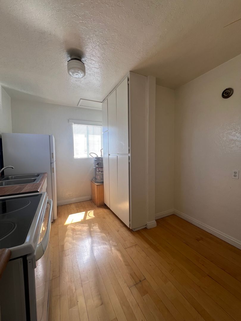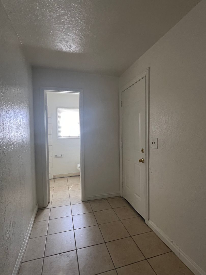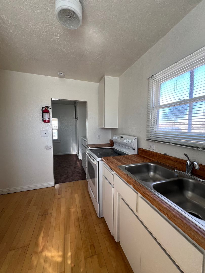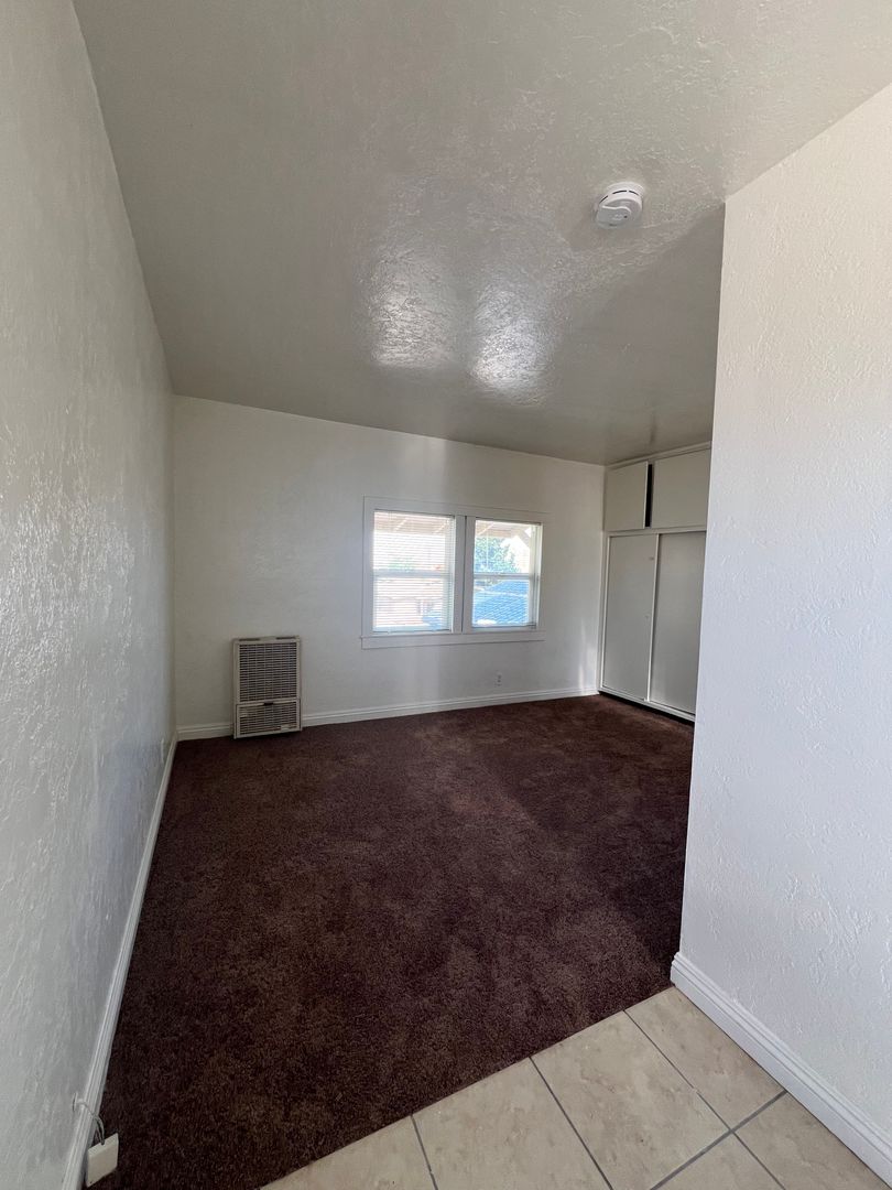 Introducing a charming studio apartment in the heart of Barstow, CA. This cozy unit features a convenient upstairs location with new carpet and fresh paint throughout, creating a bright and inviting space. The apartment comes equipped with a stove and refrigerator (no warranty), as well as the added convenience of water, sewer, and trash included in the rent. The built-in desk and dresser provide ample storage and workspace, perfect for those seeking a functional and efficient living space. Don't miss out on this opportunity to make this studio apartment your new home sweet home.