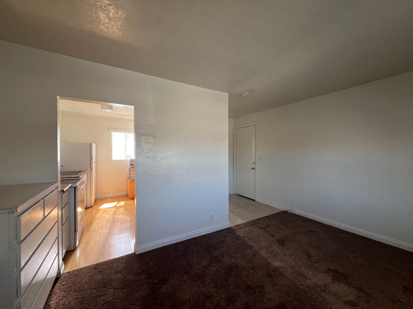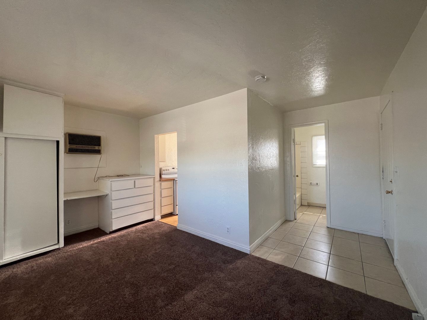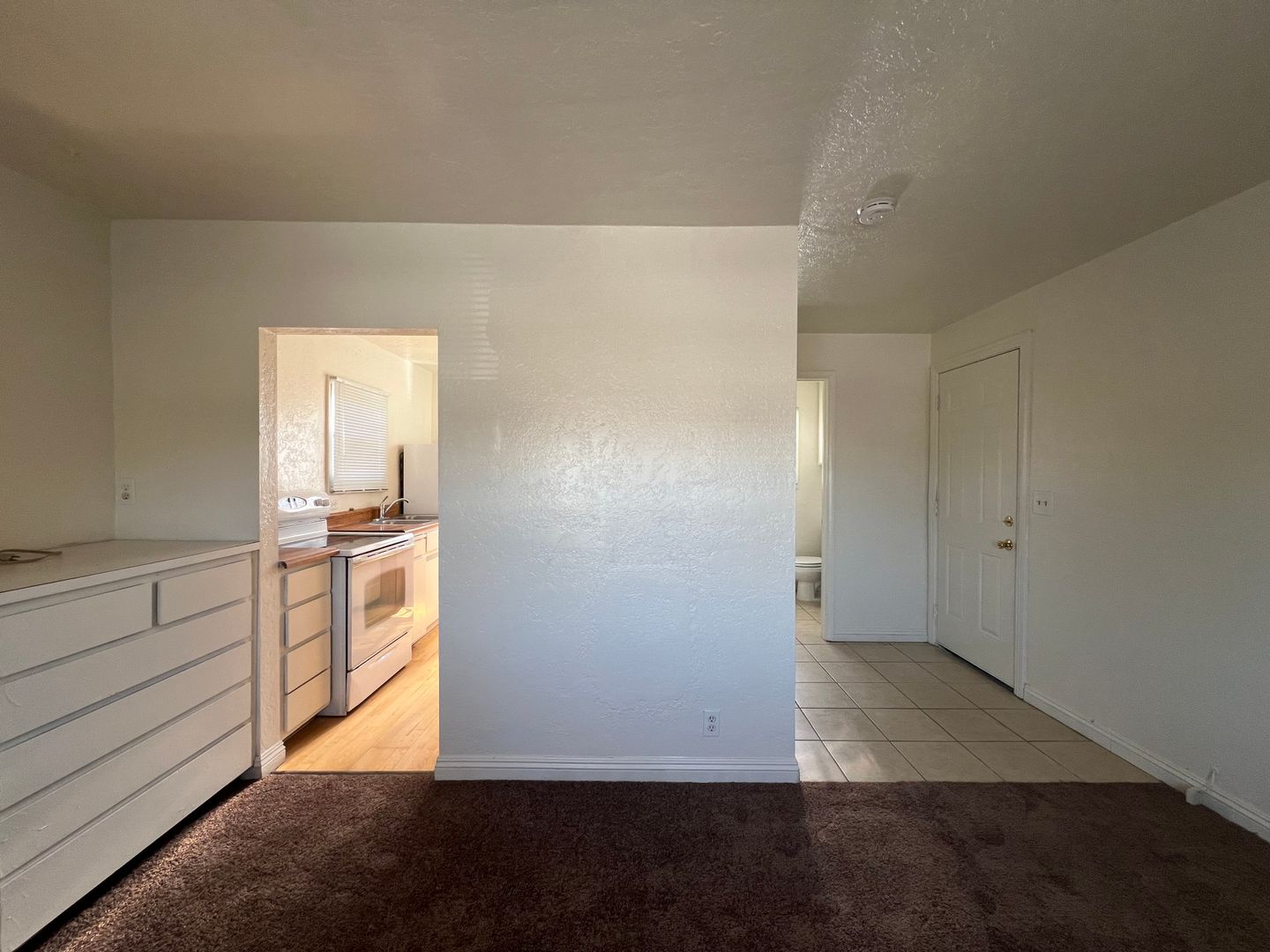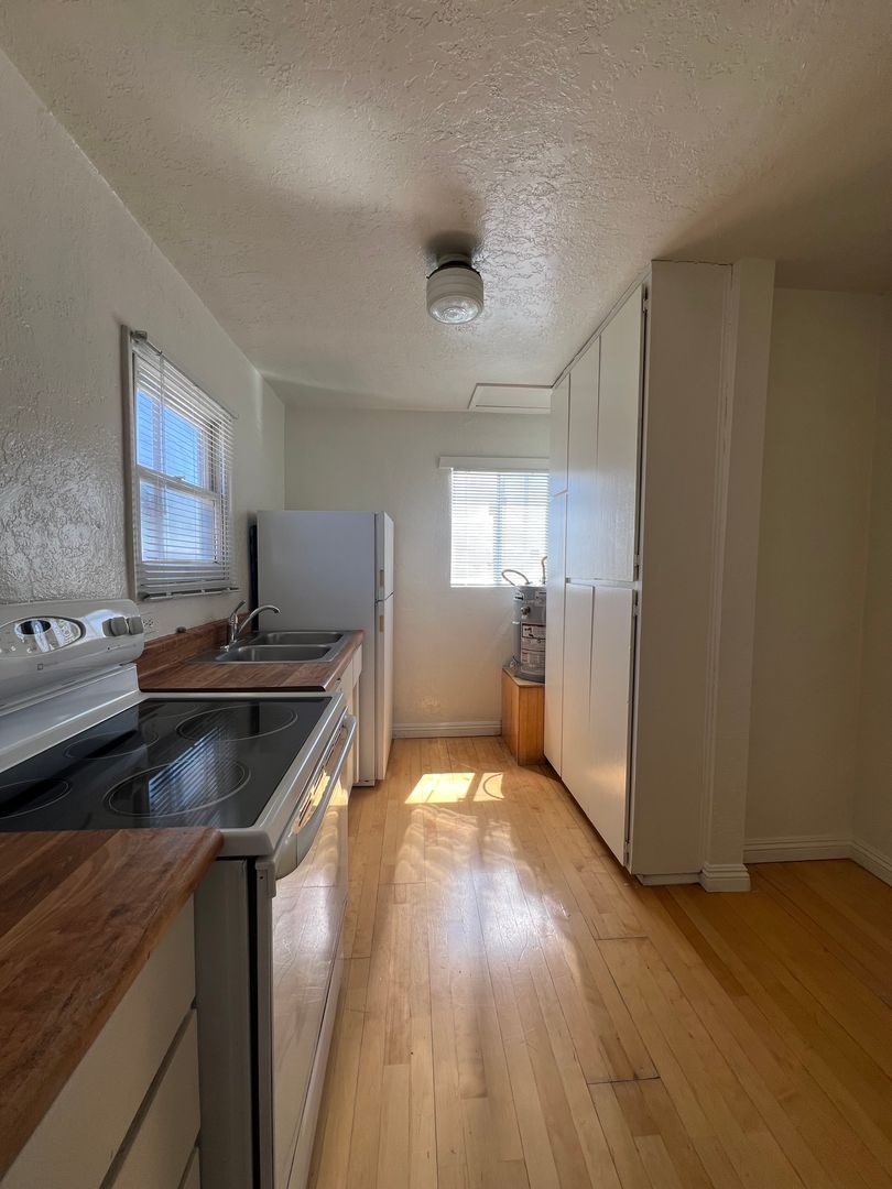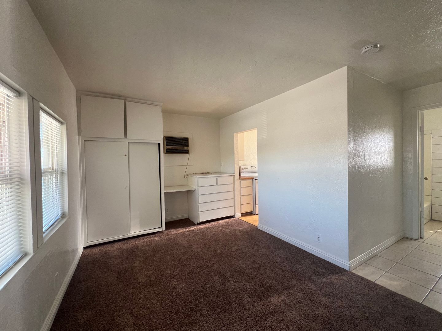 Introducing a charming studio apartment in the heart of Barstow, CA. This cozy unit features a convenient upstairs location with new carpet and fresh paint throughout, creating a bright and inviting space. The apartment comes equipped with a stove and refrigerator (no warranty), as well as the added convenience of water, sewer, and trash included in the rent. The built-in desk and dresser provide ample storage and workspace, perfect for those seeking a functional and efficient living space. Don't miss out on this opportunity to make this studio apartment your new home sweet home.