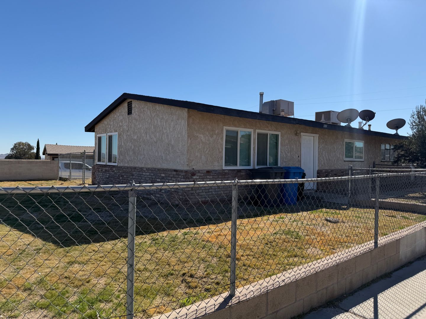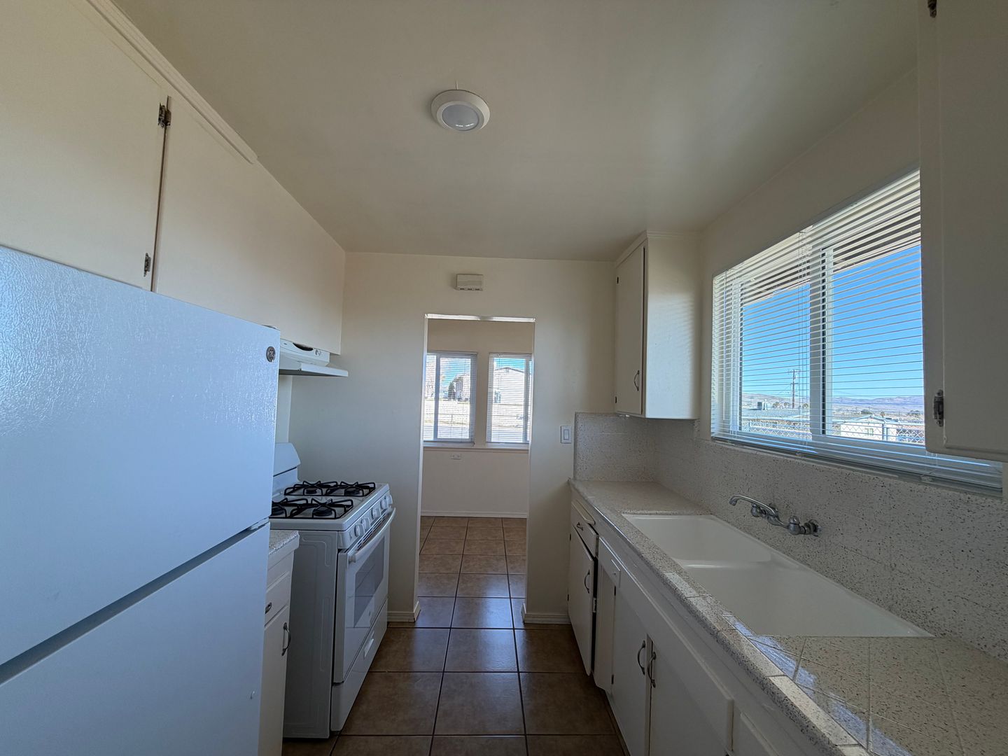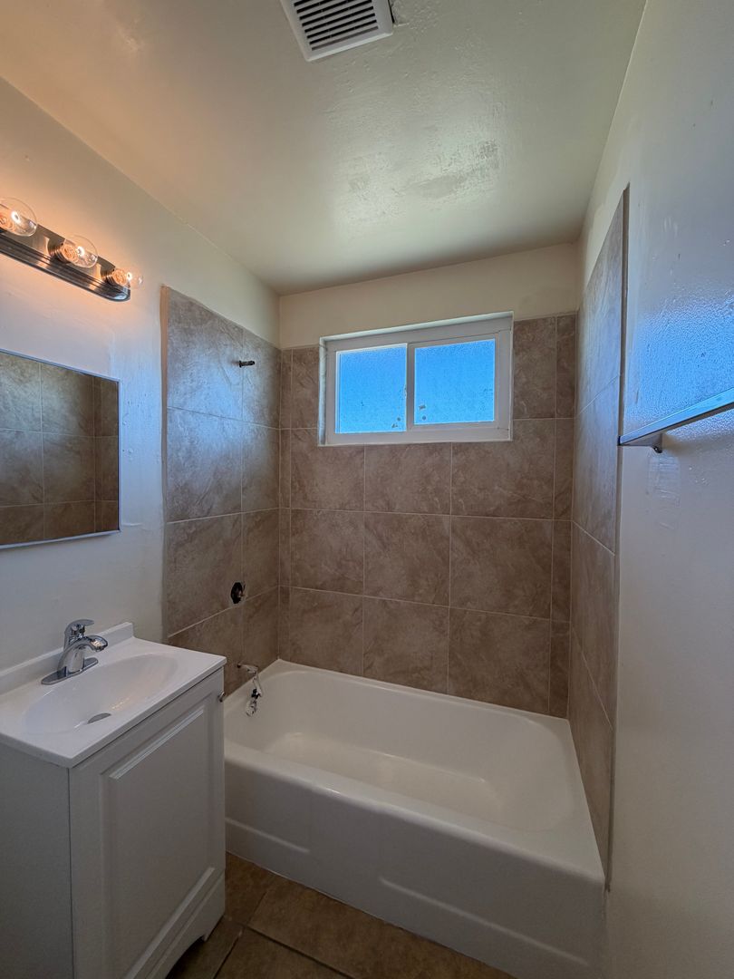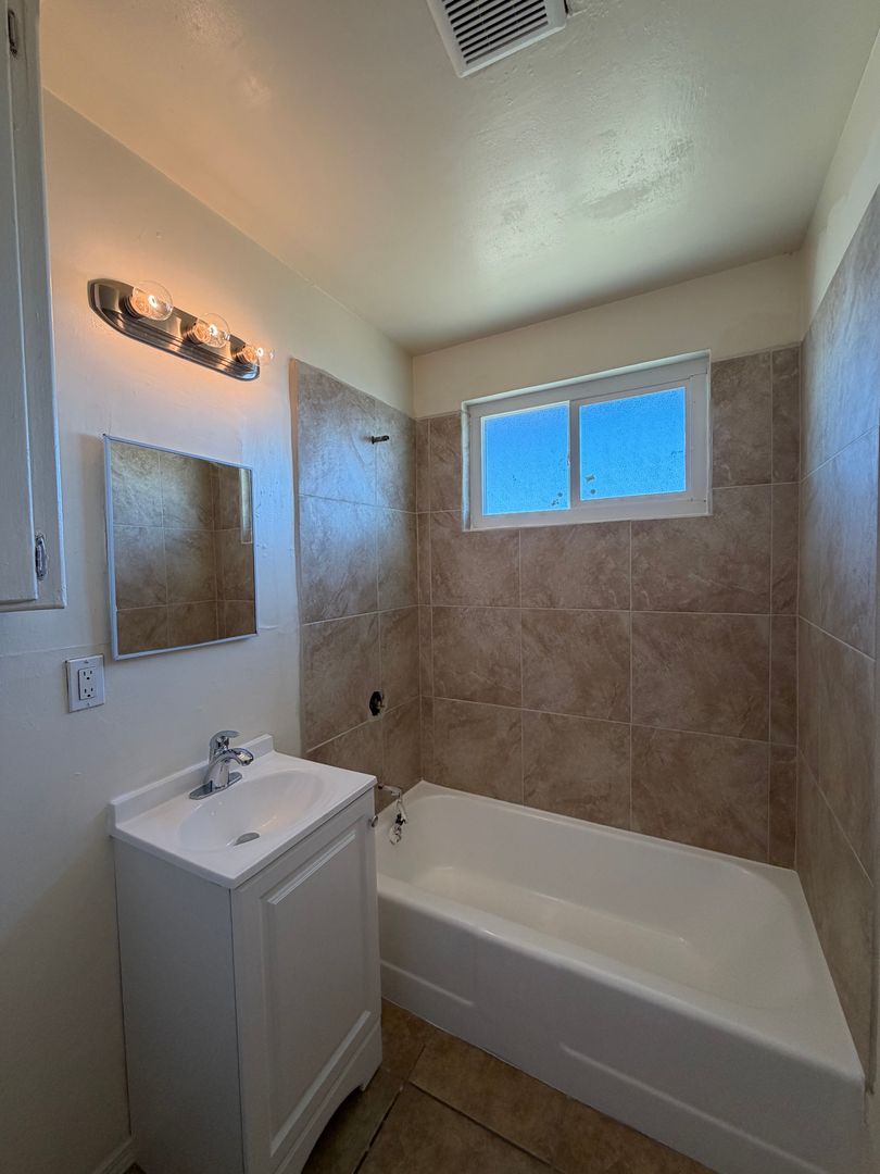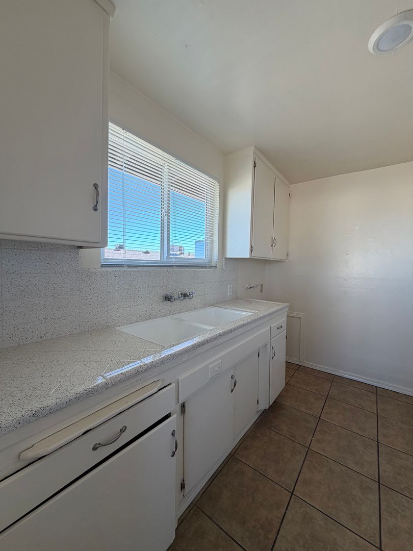 Welcome to the 2 Bedroom Duplex with Fenced Yard, located in the vibrant city of Barstow, CA. This apartment offers two spacious bedrooms and a full bathroom, complete with a new vanity, a new shower surround, and a refinished bathtub. The kitchen has been updated with refinished countertops and sink, and comes equipped with a stove and refrigerator. The entire apartment boasts tile flooring, providing a sleek and modern look. The property features a fenced front and back yard, offering outdoor space for you to enjoy. The apartment is conveniently located near schools and shopping centers, making it an ideal location for those who value accessibility. Please note that this is a no-pets property. The apartment also features new windows, enhancing the natural light and energy efficiency of the home. Experience the comfort and convenience of this 2 Bedroom Duplex with Fenced Yard in Barstow, CA.